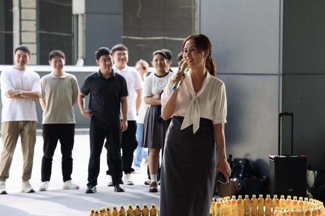 活动后,学院领导、辅导员及教师与各位新生共同合影,辅导员林凤、黄家淇及各班班委为同学们分发饮料。