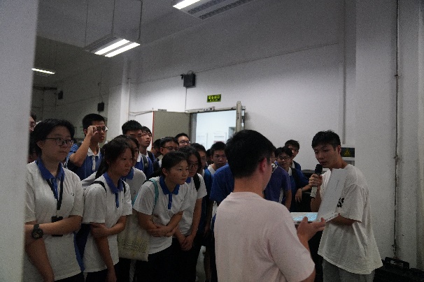 接下来,师生们分成两组,由梅柳老师和熊琛老师分别带领同学们参观了学院的结构工程实验室和BIM智能建造实验室。实验室管理员卢永明老师向学生们介绍了实验室中的各个实验设备,并用通俗易懂的例子讲解了它们的用途。学生们随后观看了结构工程的实验演示,包括模拟地震实验和DIC实验。接着,实验室管理员李逸老师和张家庆老师分别带领师生们参观了扫描电镜实验室和XCT实验室。廖龙辉老师、谭毅老师和吴环宇老师则带领大家参观了BIM智能建造实验室,体验了机械臂操作、3D扫描仪演示、无人机和机械狗、阿克曼巡检机器人展示等。在活动过程中,同学们对实验室参观和体验表现出了浓厚的兴趣。这次活动不仅让他们对我院有了更深入的认识和了解,还开阔了眼界,激发了他们对未来大学生活的向往。